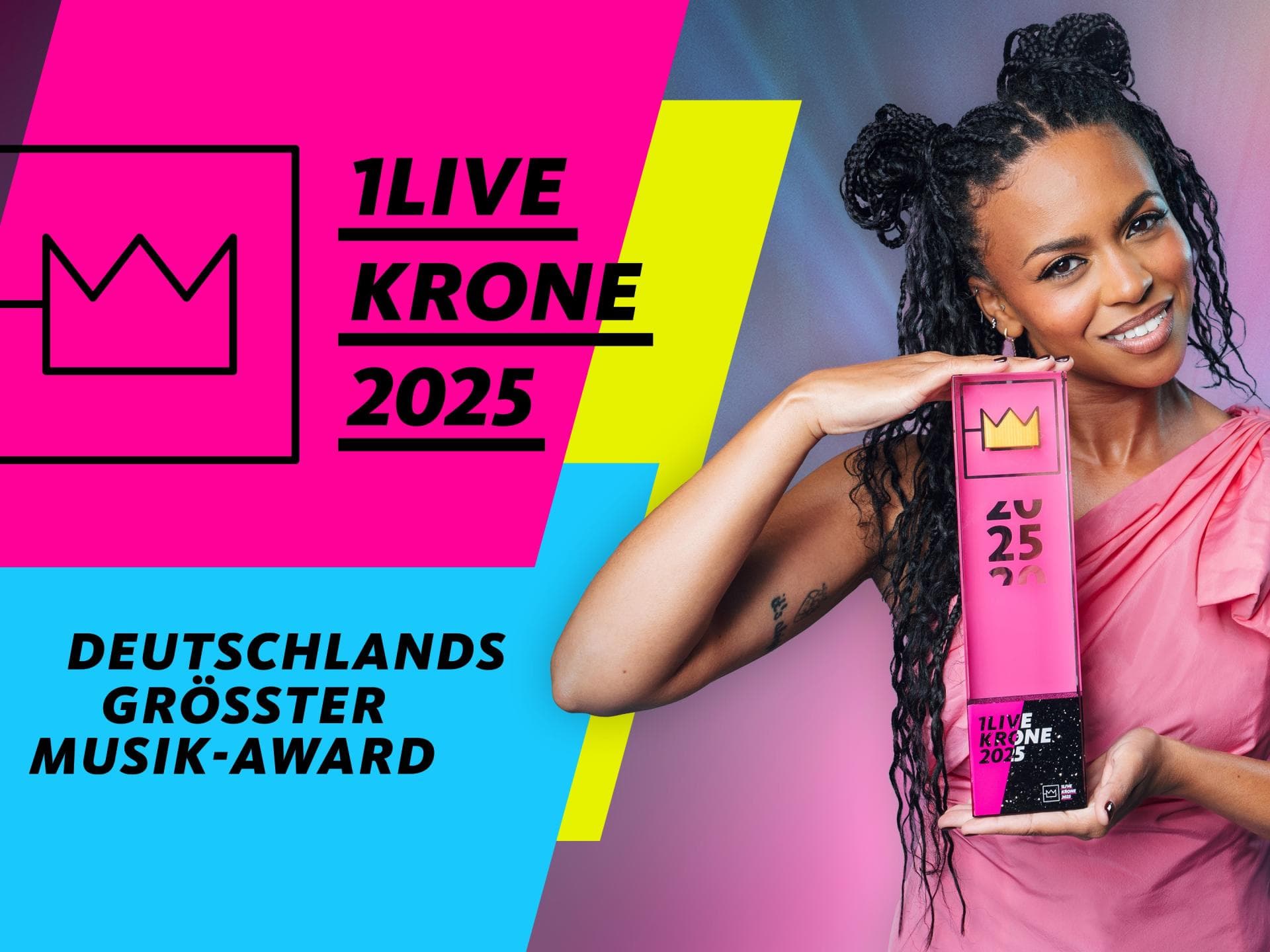 Erstmals erweitert 1LIVE das Award-Spektrum um zwei neue Kategorien: "Bester Pop Act" und "Bester Party Song". Damit wird die musikalische Vielfalt dieses Jahres noch stärker abgebildet – von großen Pop-Hooks bis zu den Tracks, die auf Festivals, in Clubs und bei Homepartys für eskalierende Stimmung gesorgt haben. Insgesamt stehen knapp 50 Acts und Songs zur Wahl. Wer mitvotet, hat die Chance auf exklusive Tickets für die Show, die regulär nicht erhältlich sind.