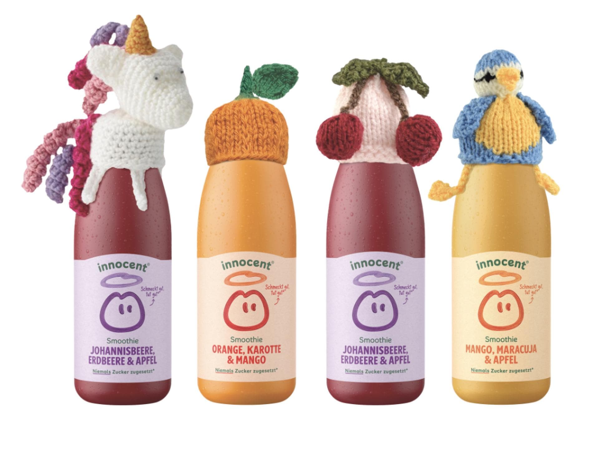 Smoothies im Kühlregal mit kleinen Wollmützchen drauf? Ungewöhnlich. Aber sehr wirksam: Denn bei der Benefizaktion "Das Große Stricken" von innocent wird für jeden verkauften Smoothie mit Mützchen eine Portion Obst & Gemüse an Bedürftige gespendet. Ab sofort bis Juli 2026 läuft die Aktion. Gestrickte Mützchen können an Sammelstellen der Malteser abgegeben oder an innocent eingesendet werden. Ab Herbst 2026 stehen Smoothies mit Mützchen im Kühlregal aller Supermärkte in Deutschland zum Verkauf. Für die Käufer:innen entstehen dabei keine Mehrkosten – die Spende übernimmt innocent. Für jeden verkauften Smoothie mit Mützchen spendet innocent eine Portion Obst & Gemüse an Bedürftige – die Verteilung dieser erfolgt deutschlandweit über den Partner die Malteser. Hier geht es zur Aktion.© PR