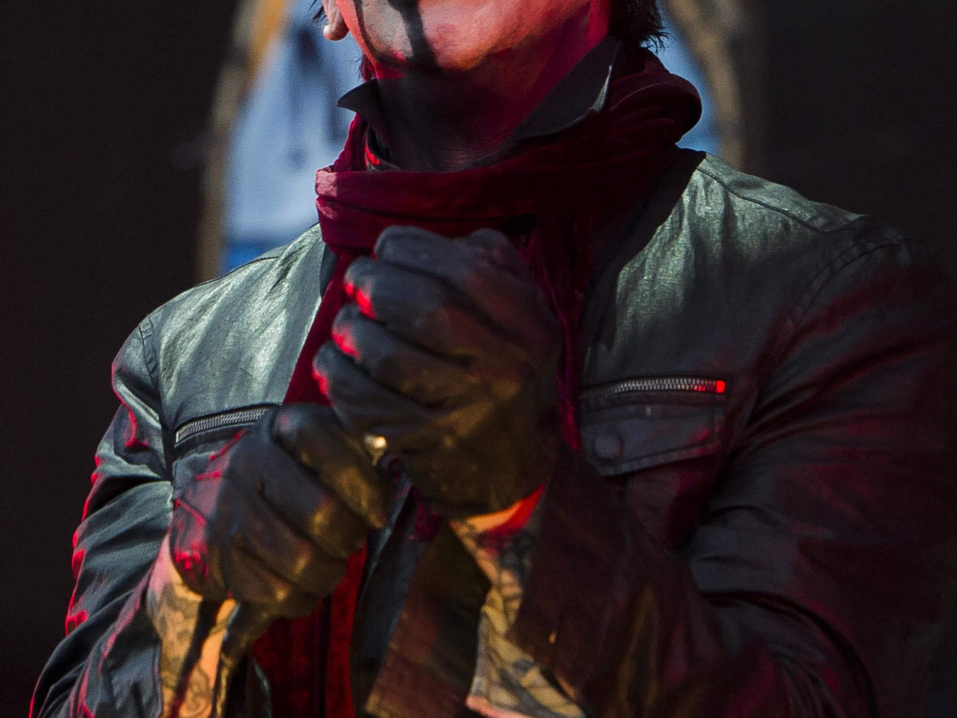 Stattdessen verblüffte der Musiker mit aufgedunsenem Gesicht und einem ungepflegten silberzahnigen Lächeln. Lediglich um die Augen hatte Marilyn Manson mit bläulichem Kajal nachgeholfen. Auch die sonst so auffällige schwarze Frisur wird von einem Hut verdeckt, der wenig Manson-Like ist.