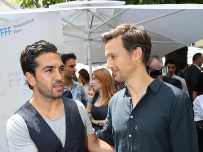 An seiner Seite hatte Elyas nicht etwa Freundin „Julio“, wie er seine bessere Hälfte nennt, sondern seinen Kollegen Florian David Fitz. Der wiederum kam in tierischer Begleitung von Hund Elmo am Donnerstagabend, 30. Juni, zum Filmfestival.