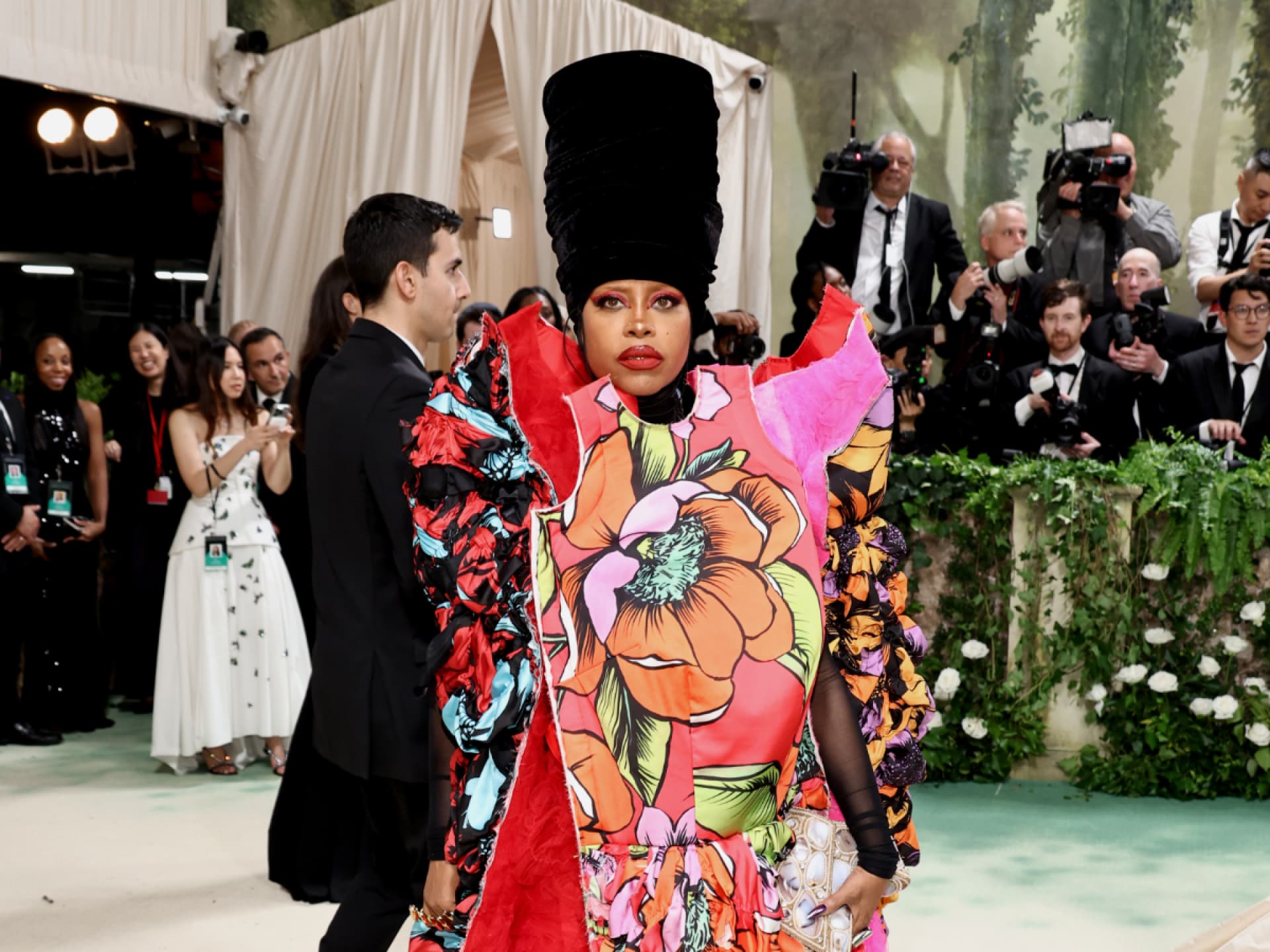 Erykah Badu erinnert eher an einem Guard des Buckingham Palasts als an eine Dornröschen-Prinzessin.© Jamie McCarthy/Getty Images
